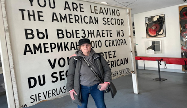 Later hoorden we dat Alzira met spoed geopereerd moest worden. Ondanks alles zijn we er toch op uit getrokken om onze dag te vervolgen. We gingen na het ontbijt op weg naar Checkpoint Charlie alwaar Jos en Mariëtte hun presentatie zouden houden.Helaas moest Mariëtte weer terug naar het hotel om telefoonnummers te zoeken en door te geven aan Nicole om zich daarna weer bij ons te voegen. Een paar van ons zijn ook nog in het museum geweest dat bij Checkpoint Charlie is gelegen. Daarna hebben we weer een plekje gevonden waar we heerlijk konden lunchen en daarna gingen we op weg naar het Holocaust Museum.