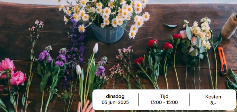 Datum Dinsdag 03 juni van 13:00 – 15:00 Kosten: €8,-
