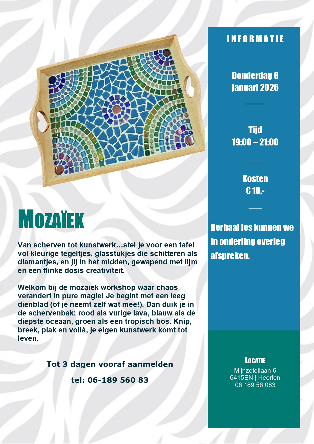 Meer informatie is te vinden onder workshops in het menu of in ons programmaboekje .