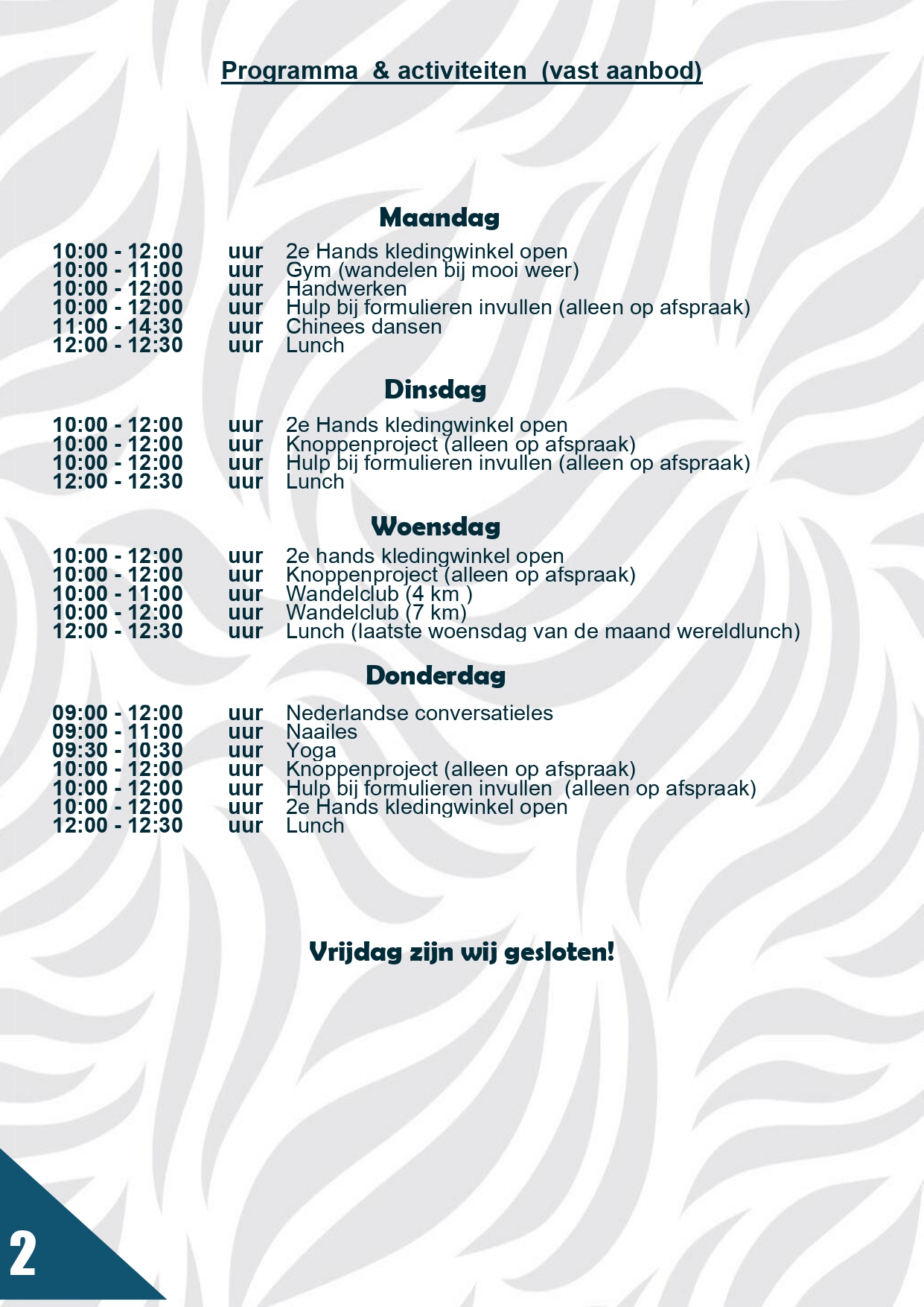 Programmaboekje nieuw ontwerp-pagina’s (1)_page-0002 Gepubliceerd door Danny Lousberg op 27 augustus 2025 Lees het volgend bericht → Mededelingen Wereldlunch | Geanuleerd workshops 25-09-2025 | Bloemschikken verslag activiteit Workshop bloemschikken Danny Lousberg Lees het volgend bericht → Mededelingen Wereldlunch | Geanuleerd workshops 25-09-2025 | Bloemschikken verslag activiteit Workshop bloemschikken